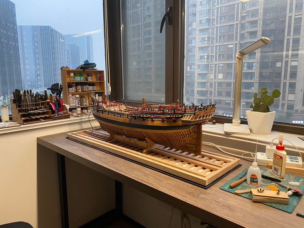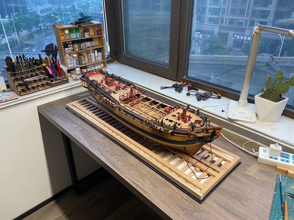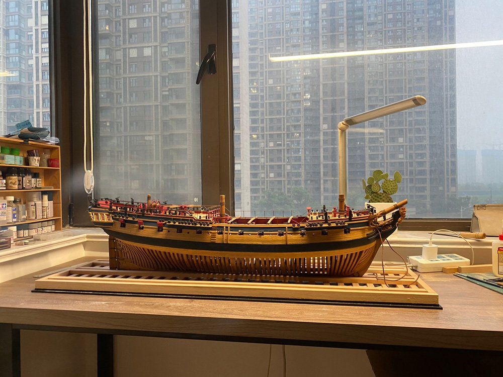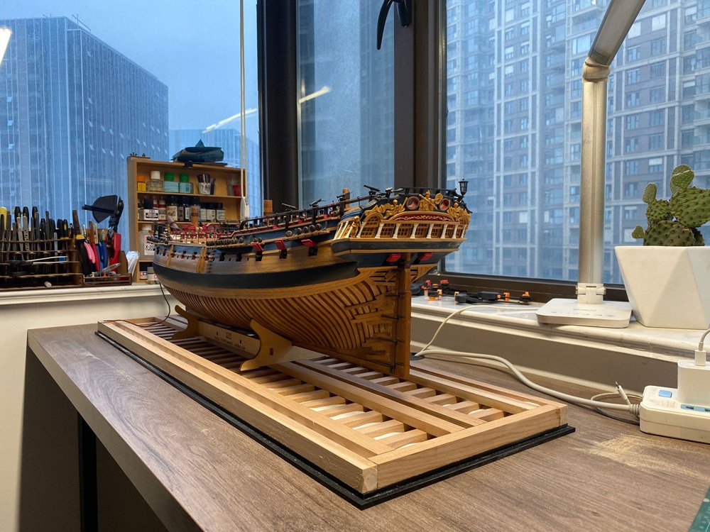 Structural model Length: 670mm Scale: 1/48 material: Hull: cherry wood maple wood Sculpture: Boxwood Metal parts: brass The whole ship