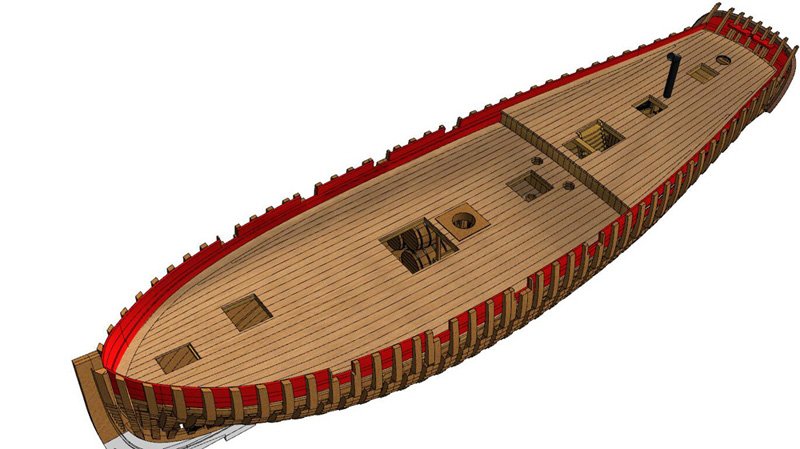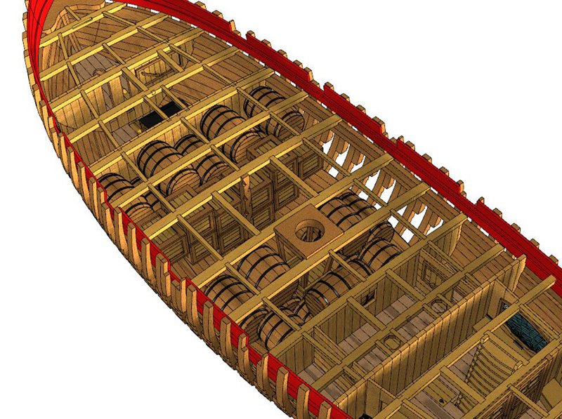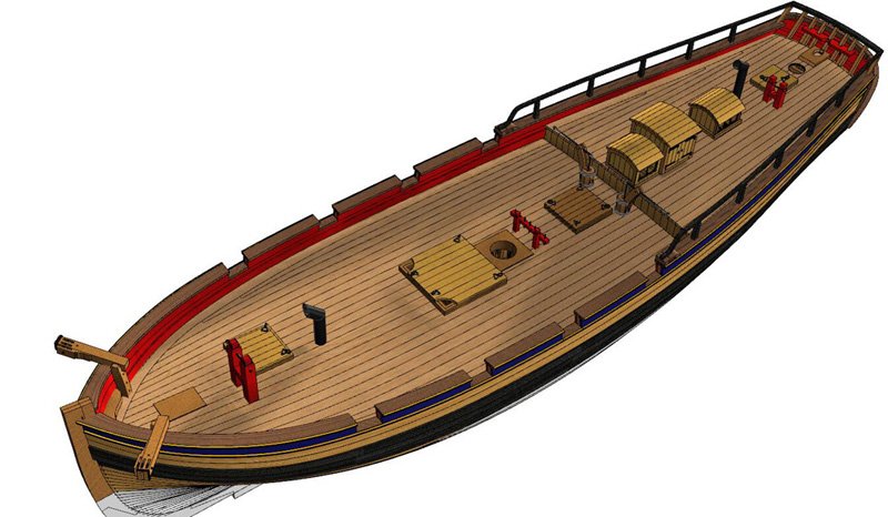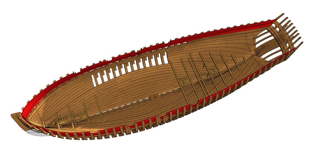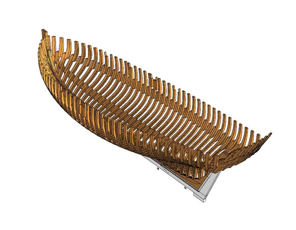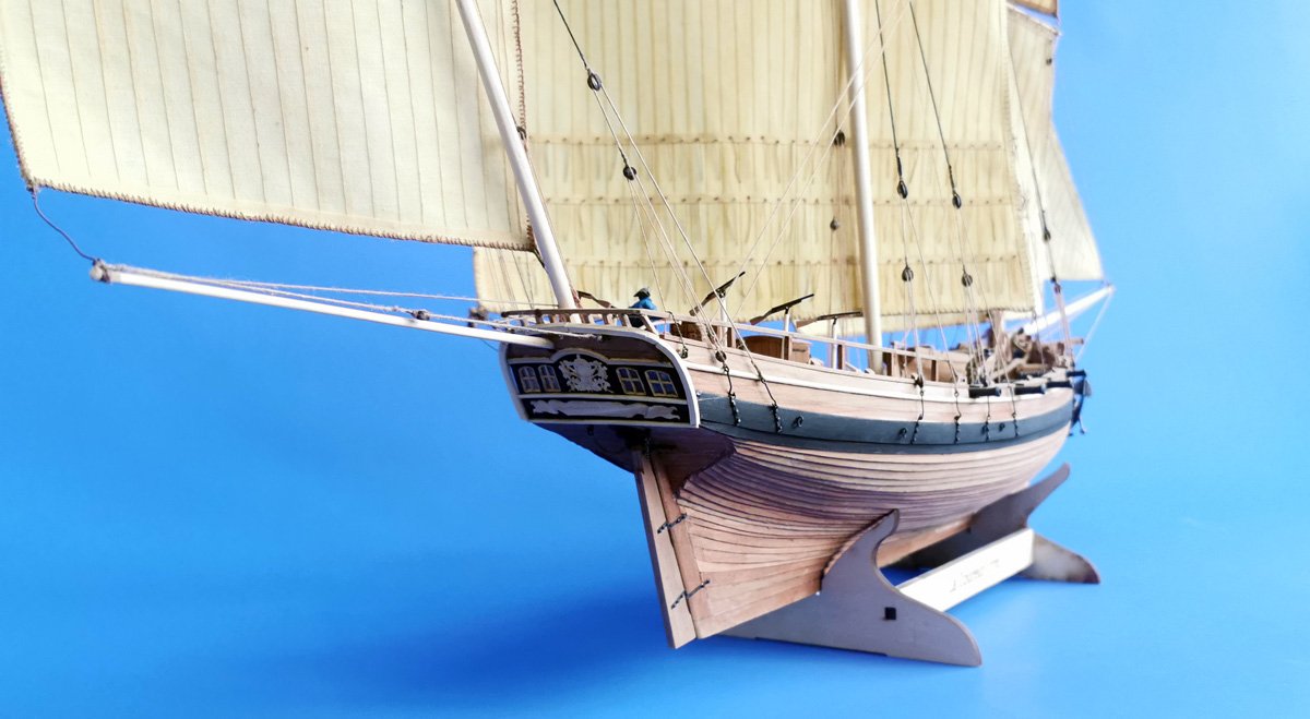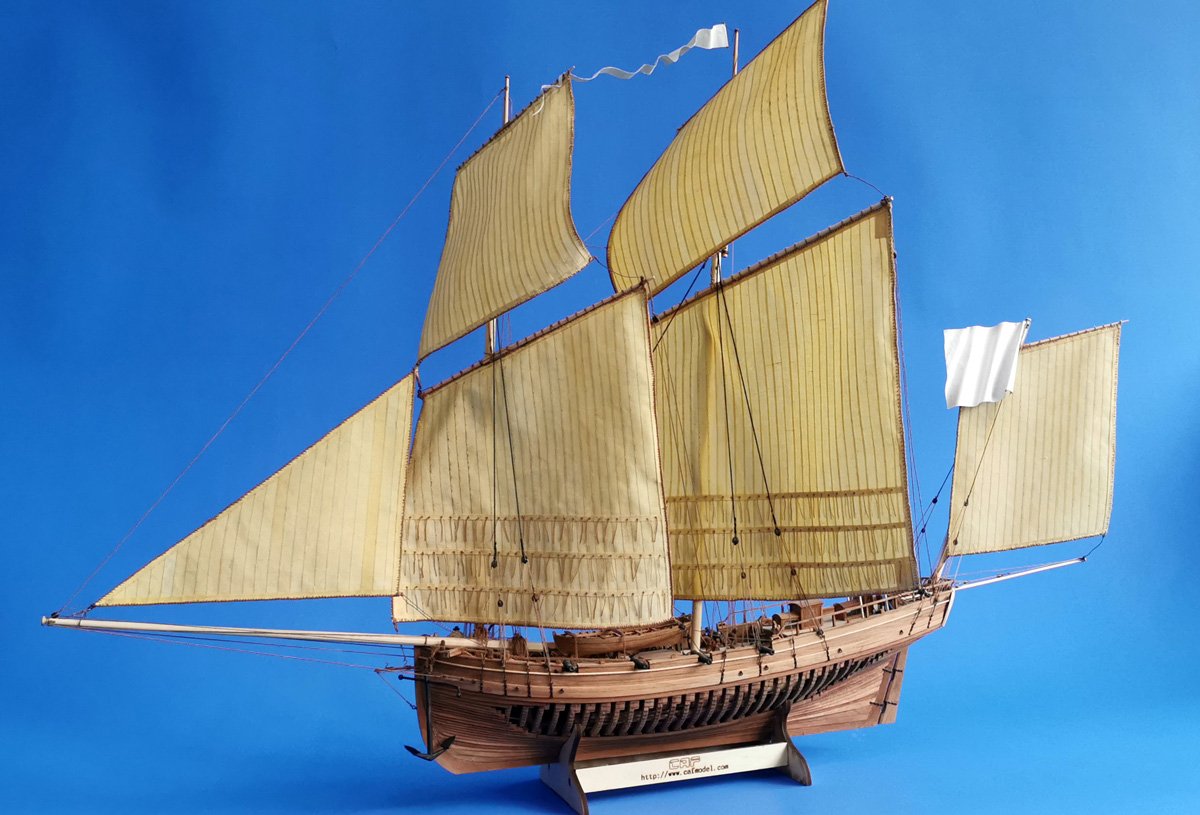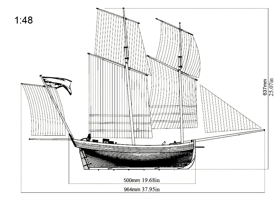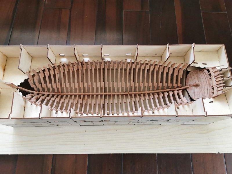 Scale 1/48 Length 1250 mm Width 300 mm Height 335 mm External keel: Simulation of cherry wood splicing internal keel: