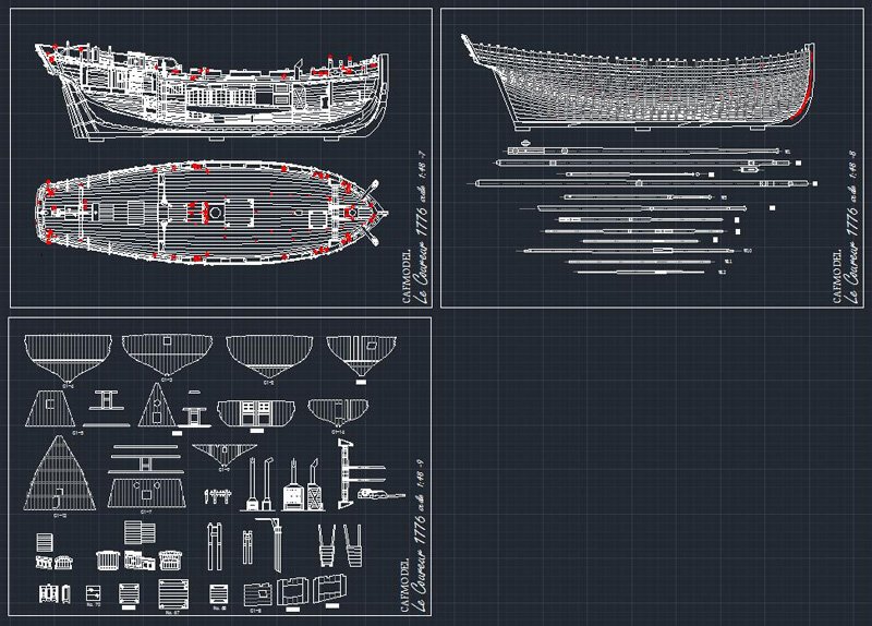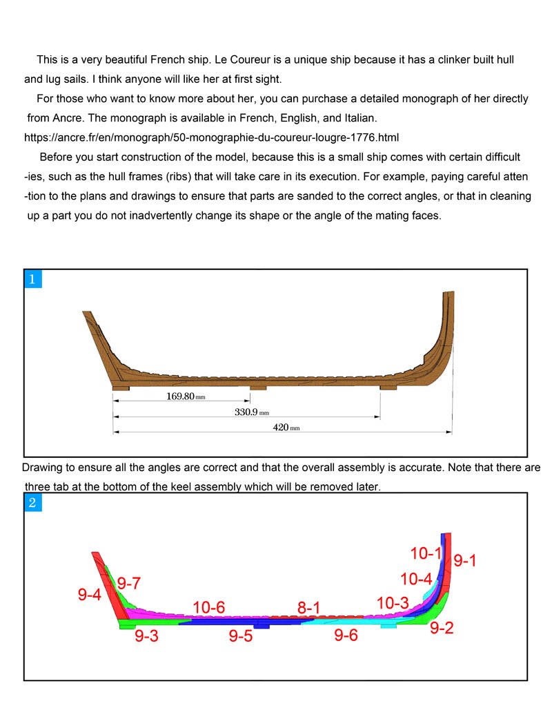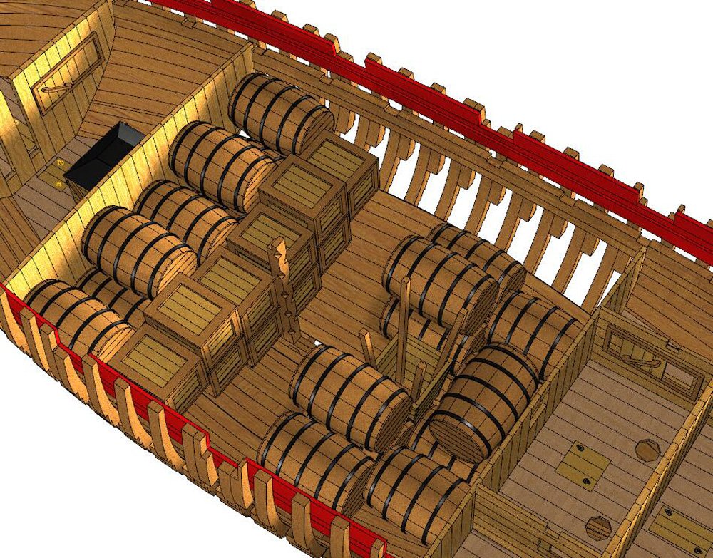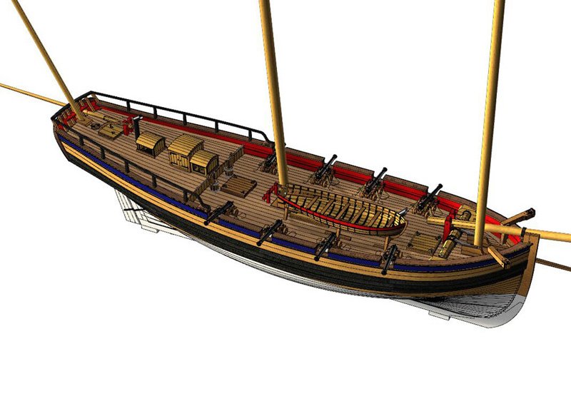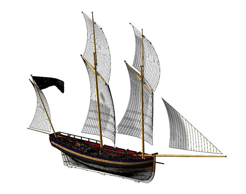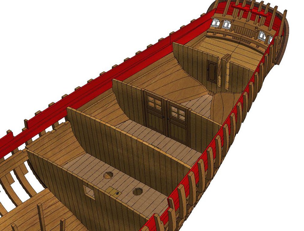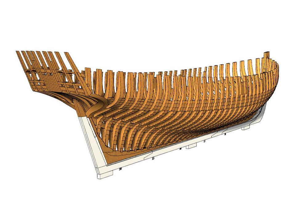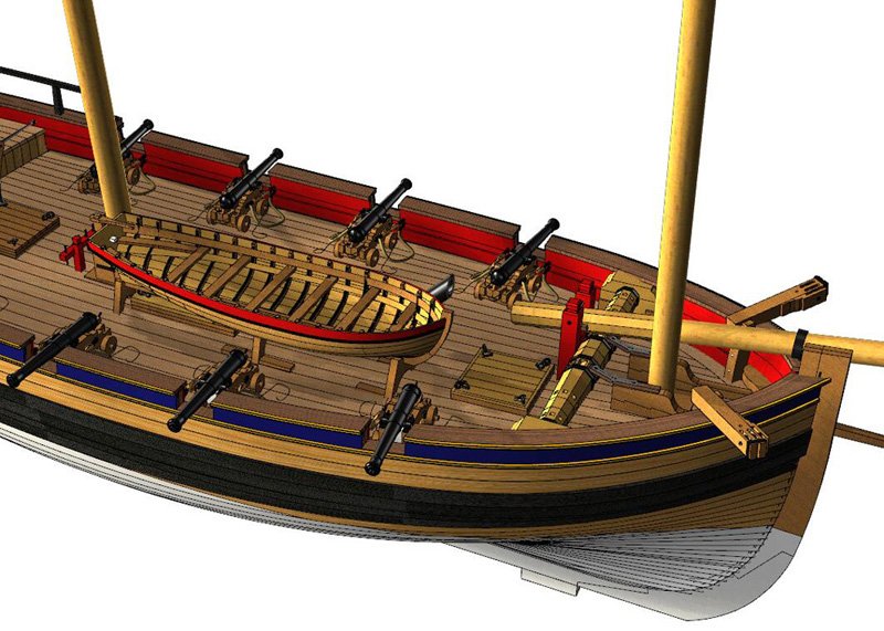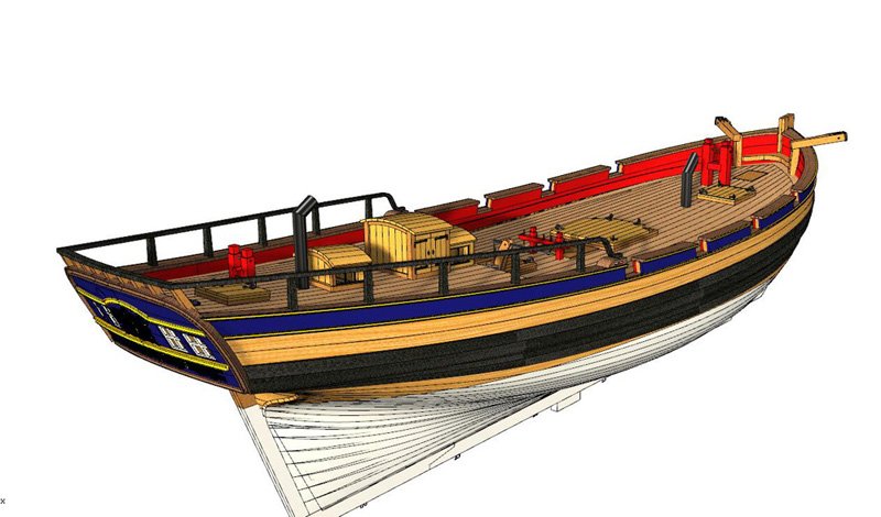 Scale 1/48 Length 1250 mm Width 300 mm Height 335 mm External keel: Simulation of cherry wood splicing internal keel: