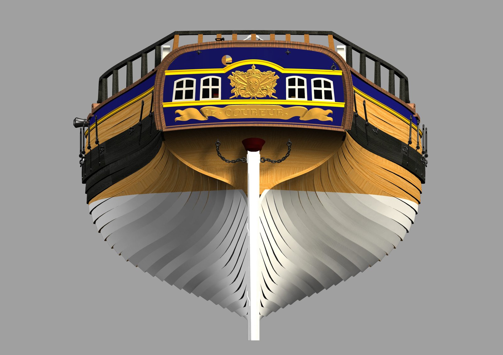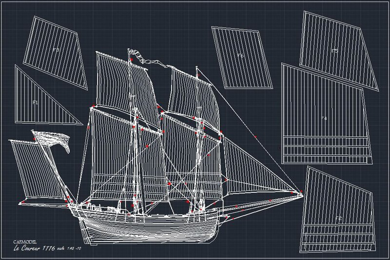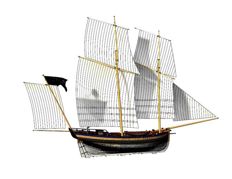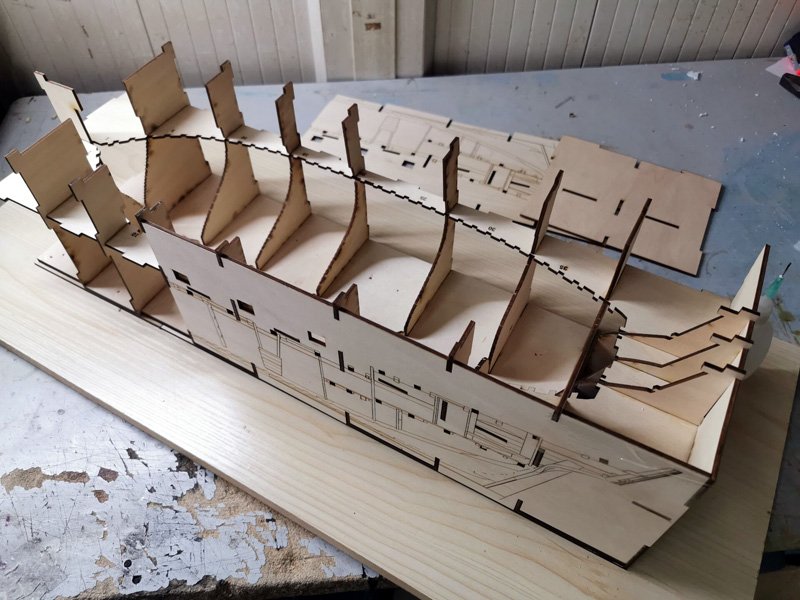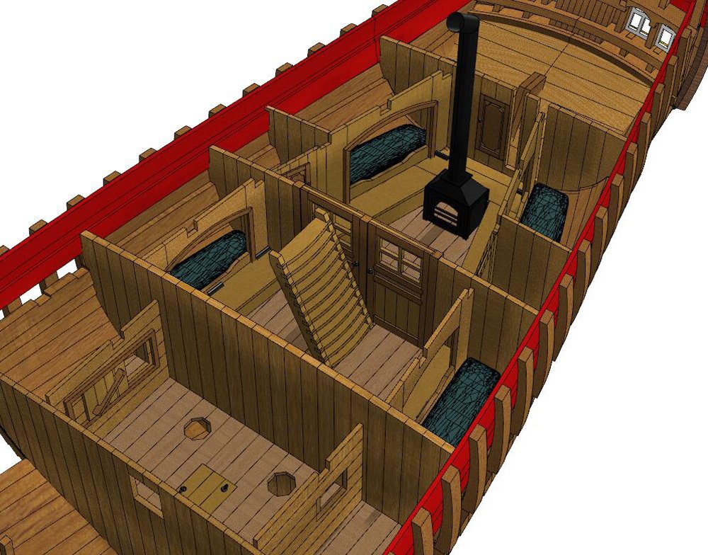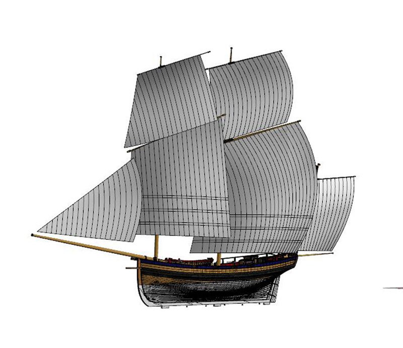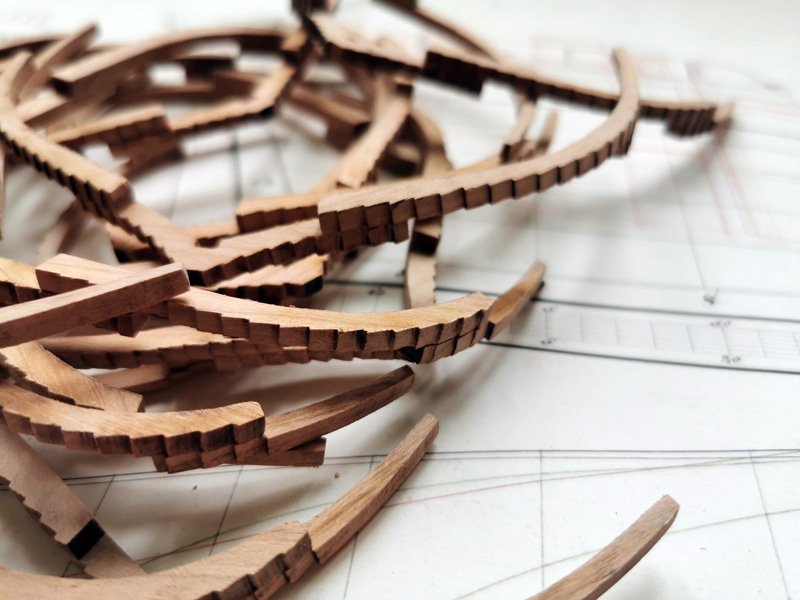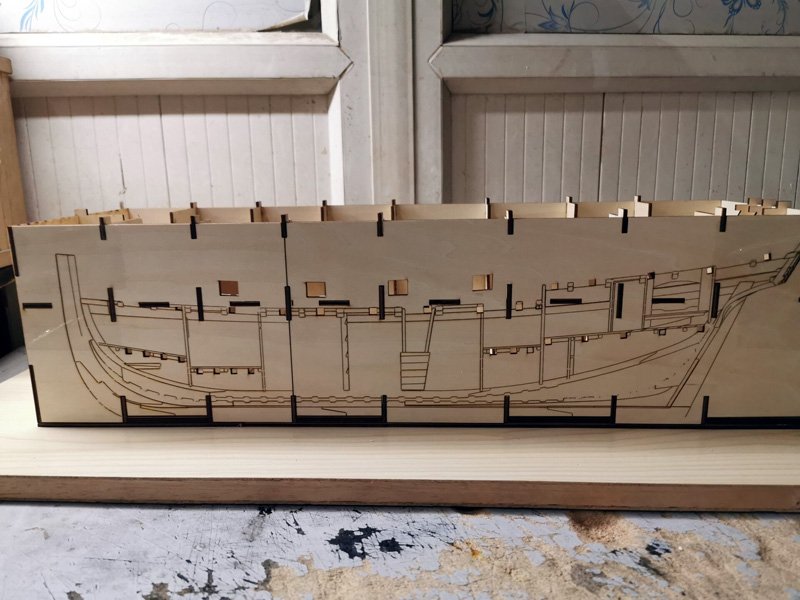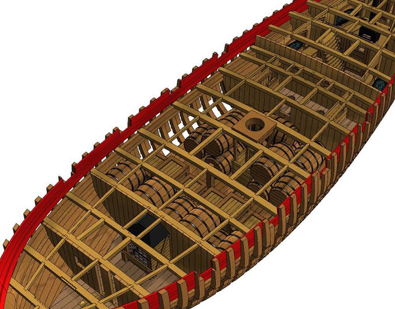 Scale 1/48 Length 1250 mm Width 300 mm Height 335 mm External keel: Simulation of cherry wood splicing internal keel: