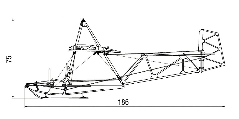 The primary structure of the glider is of wood, with the wings, tail surfaces and inverted “V” kingpost all finished in doped aircraft fabric covering.